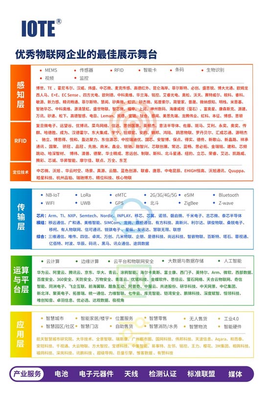 3、完整產(chǎn)業(yè)鏈,采購更容易。涵蓋物聯(lián)網(wǎng)感知層、網(wǎng)絡(luò)傳輸層、運算與平臺層、應(yīng)用層。還有以應(yīng)用集成導(dǎo)向的同期展,聚焦:5G、新基建、智慧城市、工業(yè)物聯(lián)網(wǎng)、等物聯(lián)網(wǎng)核心應(yīng)用,一站式展示物聯(lián)網(wǎng)產(chǎn)業(yè)最新技術(shù)、產(chǎn)品、方案、企業(yè)。