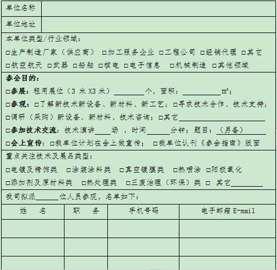 2024 成渝軍民兩用裝備表面處理技術創(chuàng)新大會 · 參會回執(zhí)表