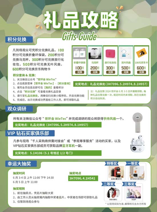 為進一步提升觀眾的參觀體驗,本屆展會現(xiàn)場將進行“積分兌換禮品”活動,最高可得百元購物卡。同時,“幸運大抽獎”也會陸續(xù)解鎖,憑名片即可參與,超值好禮在等您。