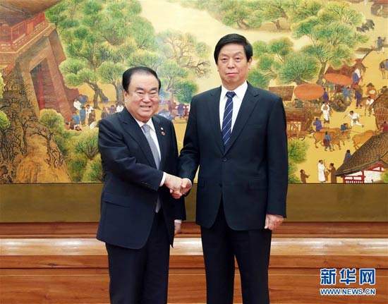栗戰(zhàn)書與韓國(guó)國(guó)會(huì)議長(zhǎng)文喜相舉行會(huì)談