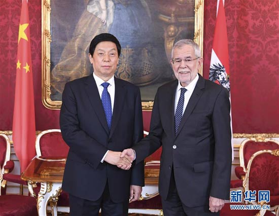 5月18日至21日,應(yīng)奧地利國民議會議長索博特卡和聯(lián)邦議會議長阿佩邀請,全國人大常委會委員長栗戰(zhàn)書對奧地利進行正式友好訪問。這是5月20日,栗戰(zhàn)書在維也納會見奧地利總統(tǒng)范德貝倫。