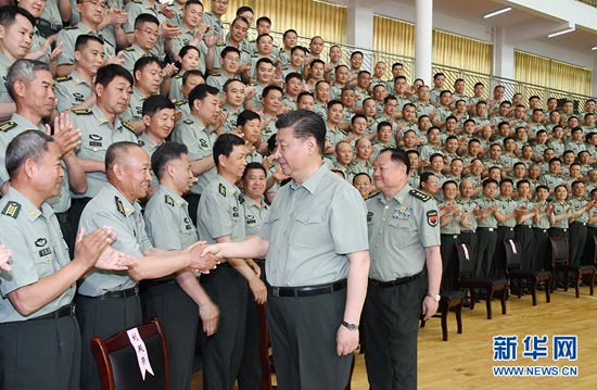 5月21日,中共中央總書記、國(guó)家主席、中央軍委主席習(xí)近平到陸軍步兵學(xué)院視察。這是習(xí)近平親切接見駐江西部隊(duì)副師職以上領(lǐng)導(dǎo)干部和建制團(tuán)級(jí)單位主官、陸軍步兵學(xué)院本部正團(tuán)職以上干部和石家莊校區(qū)主官、專家教授代表。 新華社記者 李剛 攝
