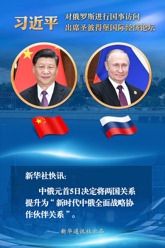 (海報(bào))中俄元首決定將兩國(guó)關(guān)系提升為“新時(shí)代中俄全面戰(zhàn)略協(xié)作伙伴關(guān)系”