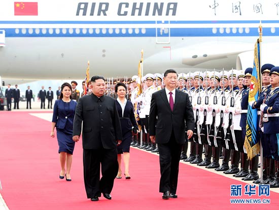 6月20日,中共中央總書(shū)記、國(guó)家主席習(xí)近平乘專機(jī)抵達(dá)平壤,開(kāi)始對(duì)朝鮮民主主義人民共和國(guó)進(jìn)行國(guó)事訪問(wèn)。朝鮮勞動(dòng)黨委員長(zhǎng)、國(guó)務(wù)委員會(huì)委員長(zhǎng)金正恩和夫人李雪主到機(jī)場(chǎng)熱情迎接習(xí)近平和夫人彭麗媛。朝方在機(jī)場(chǎng)舉行隆重歡迎儀式。 新華社記者 黃敬文 攝