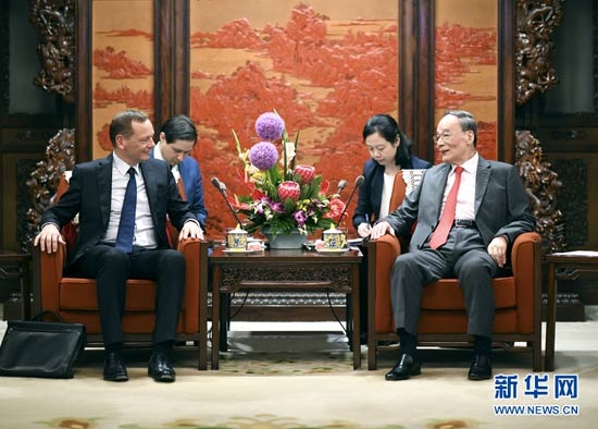 7月19日,國家副主席王岐山在北京中南海會見法國總統(tǒng)外事顧問博納。 新華社記者燕雁攝