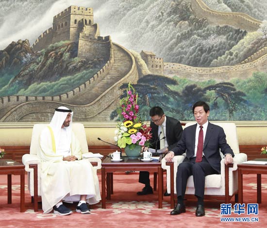 栗戰(zhàn)書(shū)會(huì)見(jiàn)阿聯(lián)酋阿布扎比王儲(chǔ)穆罕默德