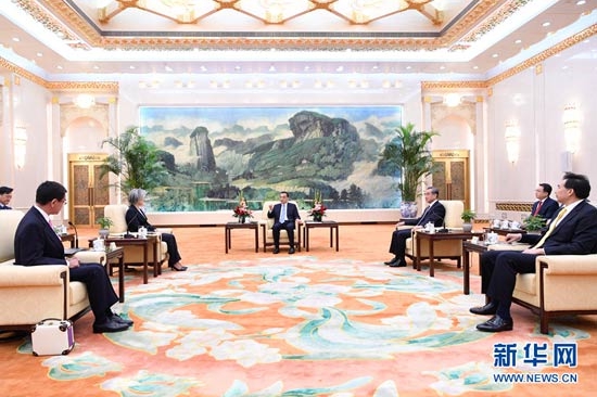 李克強會見出席中日韓外長會的韓國外長和日本外相