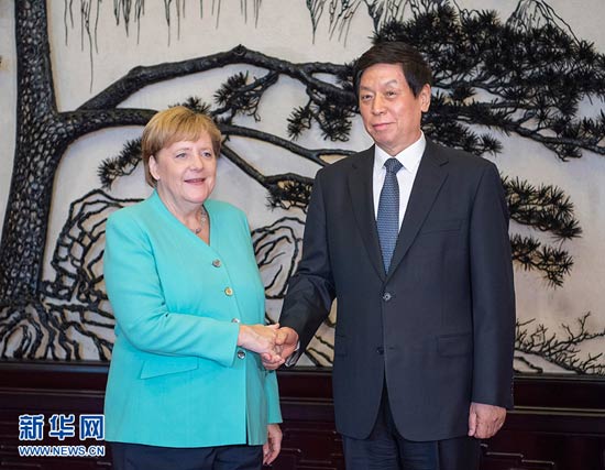 9月6日,全國人大常委會委員長栗戰(zhàn)書在北京人民大會堂會見德國總理默克爾。 新華社記者 李濤 攝