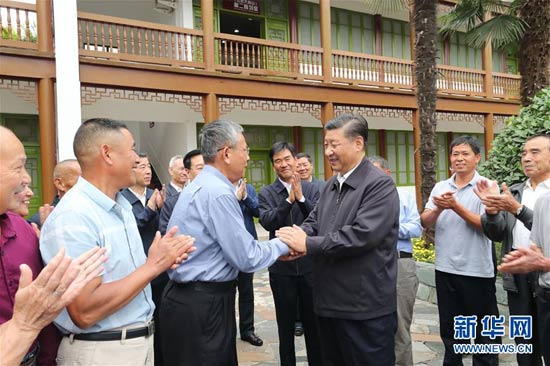 9月16日,中共中央總書記、國家主席、中央軍委主席習(xí)近平在河南省考察調(diào)研。這是習(xí)近平參觀位于新縣的鄂豫皖蘇區(qū)首府革命博物館,并看望當(dāng)?shù)丶t軍后代、烈士家屬代表。 新華社記者 鞠鵬 攝