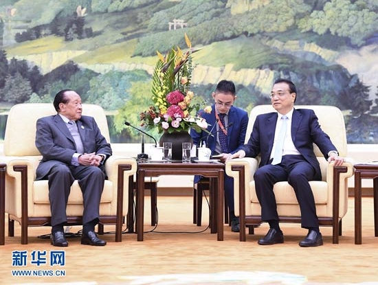 10月9日,國務院總理李克強在北京人民大會堂會見來華出席2019年中國北京世界園藝博覽會閉幕式的柬埔寨副首相賀南洪。 新華社記者 燕雁攝