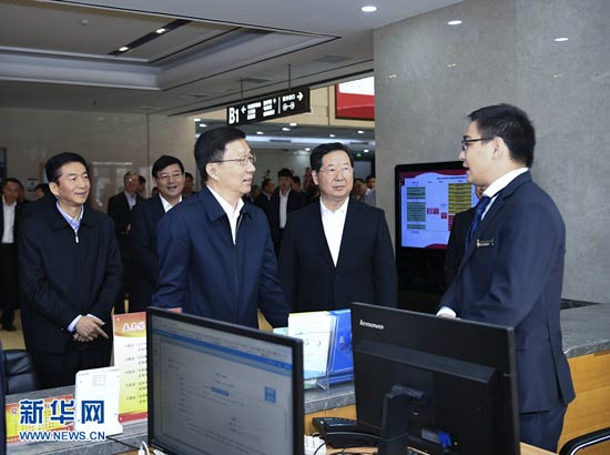 10月21日至22日,中共中央政治局常委、國(guó)務(wù)院副總理韓正在山西省調(diào)研。這是10月21日,韓正來(lái)到山西省政務(wù)服務(wù)中心,考察政府職能轉(zhuǎn)變和“放管服”改革推進(jìn)情況。 新華社記者 燕雁 攝