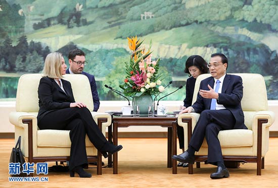 李克強(qiáng)會(huì)見(jiàn)歐盟委員會(huì)副主席、歐盟外交與安全政策高級(jí)代表莫蓋里尼