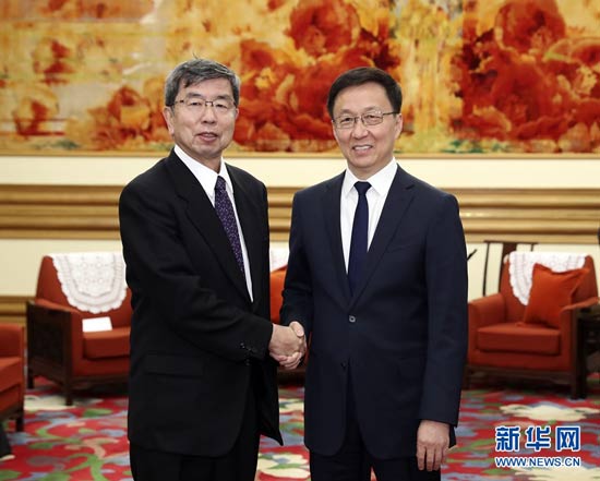 12月3日,中共中央政治局常委、國務(wù)院副總理韓正在北京中南海會見亞洲開發(fā)銀行行長中尾武彥。 新華社記者 丁林 攝