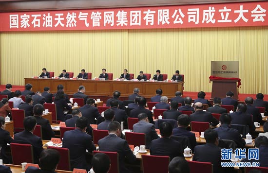 12月9日,國家石油天然氣管網集團有限公司成立大會在北京舉行。中共中央政治局常委、國務院副總理韓正出席成立大會并講話。 新華社記者 丁林 攝