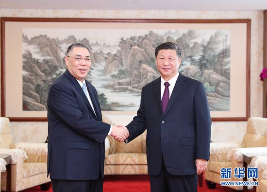 12月18日,國家主席習(xí)近平在澳門會(huì)見澳門特別行政區(qū)行政長官崔世安。 新華社記者 王曄 攝