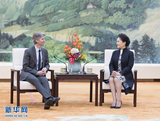1月8日,國家主席習(xí)近平夫人彭麗媛在北京會見美國茱莉亞學(xué)院院長沃澤爾?!⌒氯A社記者 王曄 攝
