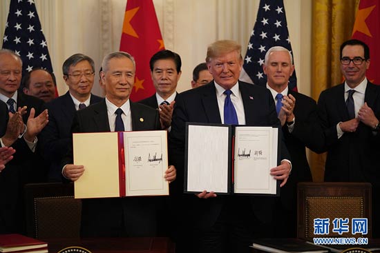 中美第一階段經(jīng)貿(mào)協(xié)議簽署儀式在華盛頓舉行