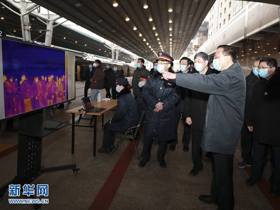 2月14日,中共中央政治局常委、國(guó)務(wù)院總理、中央應(yīng)對(duì)新冠肺炎疫情工作領(lǐng)導(dǎo)小組組長(zhǎng)李克強(qiáng)赴北京西站考察有序錯(cuò)峰返程和新冠肺炎疫情防控工作。 這是李克強(qiáng)察看車站紅外測(cè)溫設(shè)施運(yùn)行情況。 新華社記者 丁林 攝