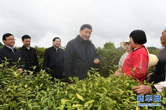 4月20日至23日,中共中央總書記、國家主席、中央軍委主席習(xí)近平在陜西考察。這是4月21日,習(xí)近平在安康市平利縣老縣鎮(zhèn)蔣家坪村女媧鳳凰茶業(yè)現(xiàn)代示范園區(qū),同茶農(nóng)們親切交談。 新華社記者 謝環(huán)馳 攝