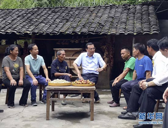 7月6日至7日,中共中央政治局常委、國務(wù)院總理李克強(qiáng)在貴州銅仁、貴陽考察。這是7月6日,李克強(qiáng)在銅仁掛扣村困難群眾家中了解災(zāi)后糧食等生活保障情況。 新華社記者 劉衛(wèi)兵 攝