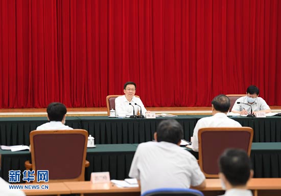 7月14日,中共中央政治局常委、國務(wù)院副總理韓正在國家發(fā)展改革委召開座談會。 新華社記者 申宏 攝