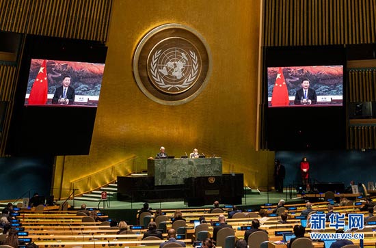 10月1日,國(guó)家主席習(xí)近平在聯(lián)合國(guó)大會(huì)紀(jì)念北京世界婦女大會(huì)25周年高級(jí)別會(huì)議上通過視頻發(fā)表重要講話。 新華社發(fā)