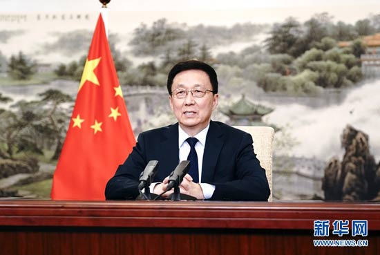 11月10日,博鰲亞洲論壇國(guó)際科技與創(chuàng)新論壇首屆大會(huì)開(kāi)幕式在澳門(mén)舉行。中共中央政治局常委、國(guó)務(wù)院副總理韓正以視頻方式發(fā)表主旨演講?!⌒氯A社記者 丁林 攝