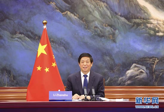6月8日,全國(guó)人大常委會(huì)委員長(zhǎng)栗戰(zhàn)書在北京人民大會(huì)堂以視頻方式同白俄羅斯國(guó)民會(huì)議共和國(guó)院主席科恰諾娃、代表院主席安德烈琴科舉行會(huì)談。新華社記者 黃敬文 攝