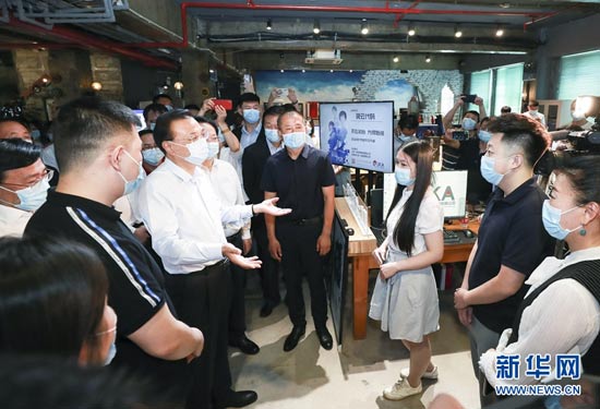 6月15日至16日,中共中央政治局常委、國務院總理李克強在吉林松原、長春考察。這是6月16日,李克強在位于長春的擺渡創(chuàng)新工場,觀看創(chuàng)新成果,詢問創(chuàng)客們創(chuàng)業(yè)經(jīng)歷和需要哪些支持。新華社記者 龐興雷 攝
