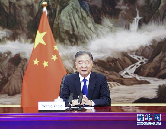 6月29日,中共中央政治局常委、全國政協(xié)主席汪洋在北京以視頻方式會見老撾人民革命黨中央政治局委員、建國陣線中央主席辛拉馮。