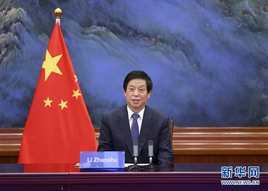 7月21日,全國人大常委會委員長栗戰(zhàn)書在北京人民大會堂以視頻方式同烏拉圭副總統(tǒng)、國會主席兼參議長阿希蒙舉行會談。新華社記者 丁海濤 攝