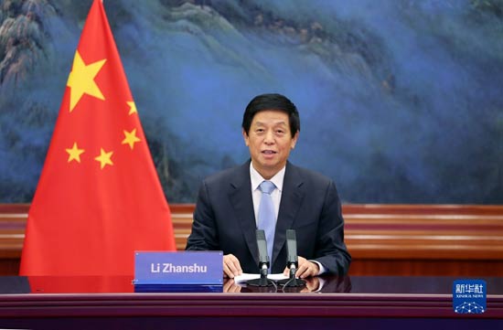 8月31日,全國人大常委會(huì)委員長(zhǎng)栗戰(zhàn)書在北京人民大會(huì)堂以視頻方式同斯里蘭卡議長(zhǎng)阿貝瓦德納舉行會(huì)談。新華社記者 姚大偉 攝