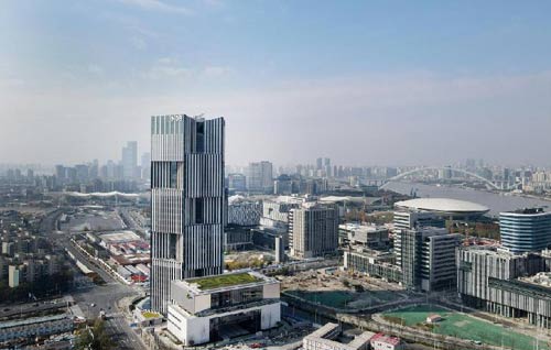2020年12月17日,新開發(fā)銀行總部大樓竣工儀式在上海舉行。這是12月17日在上海世博園區(qū)拍攝的新開發(fā)銀行總部大樓(無人機(jī)照片)。新華社記者 方喆 攝