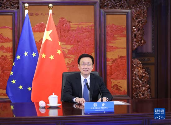 9月27日,中共中央政治局常委、國務(wù)院副總理韓正在北京通過視頻方式同歐盟委員會執(zhí)行副主席蒂默曼斯舉行第二次中歐環(huán)境與氣候高層對話。