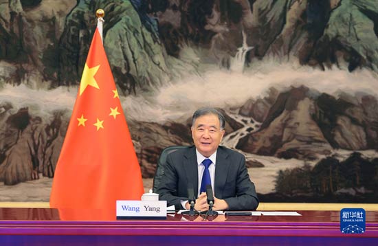 12月21日,全國政協(xié)主席汪洋在北京以視頻方式會(huì)見牙買加參議長塔瓦雷斯-芬森。新華社記者 姚大偉 攝