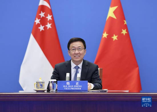 韓正同新加坡副總理王瑞杰舉行視頻會(huì)見(jiàn)并共同主持中新雙邊合作機(jī)制會(huì)議