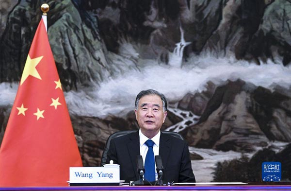 5月31日,全國(guó)政協(xié)主席汪洋在北京以視頻方式會(huì)見(jiàn)阿爾及利亞民族院議長(zhǎng)古吉勒。