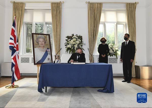 9月12日,國家副主席王岐山前往英國駐華使館,吊唁英國女王伊麗莎白二世逝世。 新華社記者 謝環(huán)馳 攝