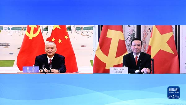 蔡奇同越共中央政治局委員、中央書記處常務(wù)書記武文賞視頻會晤