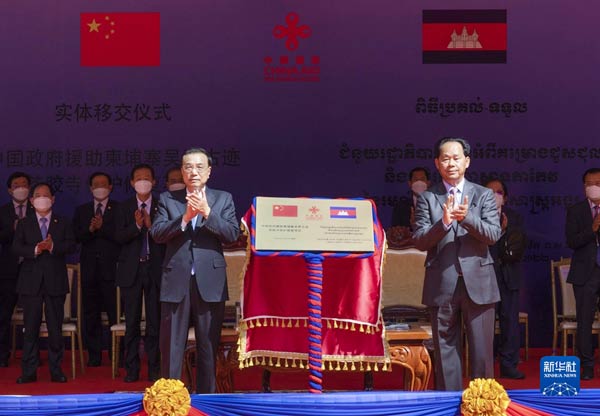 李克強(qiáng)參觀中柬文化遺產(chǎn)交流合作30年成果展并出席文物修復(fù)移交儀式