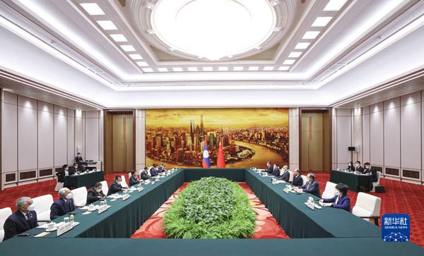 汪洋會見老撾人革黨中央總書記、國家主席通倫