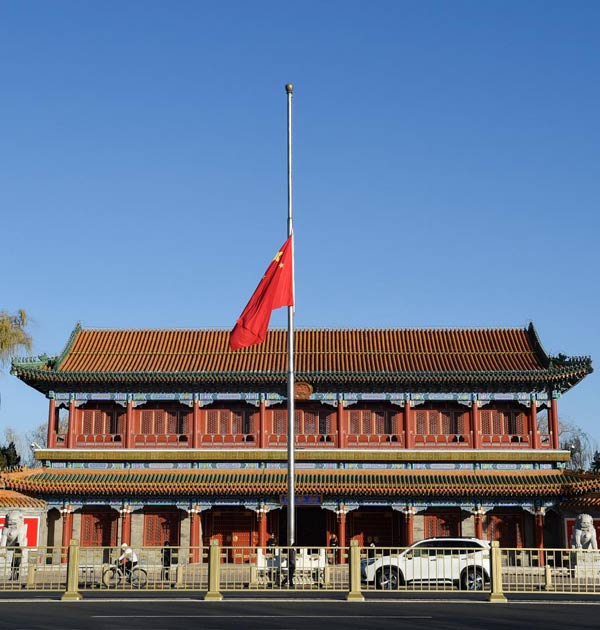 12月1日,北京新華門下半旗志哀,悼念江澤民同志逝世。新華社記者 彭子洋 攝