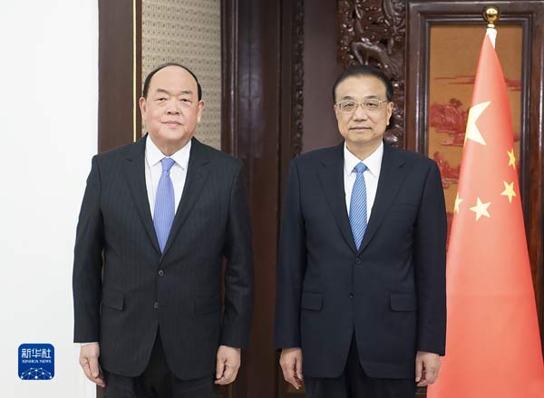 12月22日,國(guó)務(wù)院總理李克強(qiáng)在中南海紫光閣會(huì)見來京述職的澳門特別行政區(qū)行政長(zhǎng)官賀一誠(chéng)。
