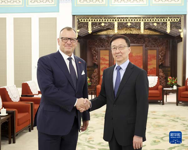 4月19日,國家副主席韓正在北京會見斯洛伐克國民議會議長科拉爾。