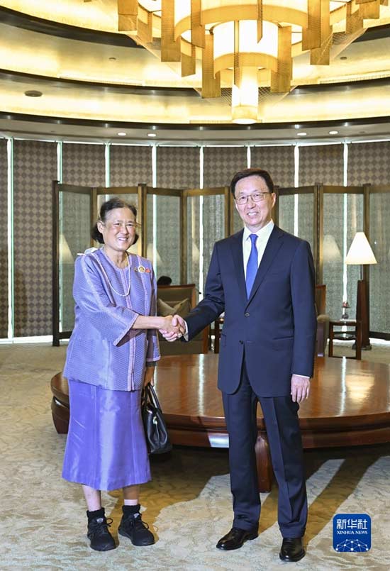 6月5日,國(guó)家副主席韓正在北京會(huì)見(jiàn)泰國(guó)公主詩(shī)琳通并出席公主第50次訪華慶?;顒?dòng)。