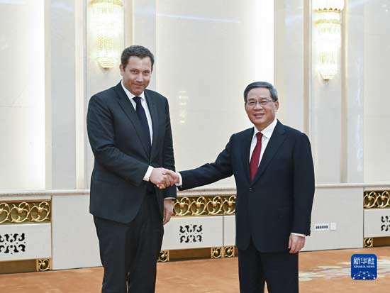 6月5日下午,中共中央政治局常委、國務(wù)院總理李強在北京人民大會堂會見由德國社會民主黨聯(lián)合主席克林貝爾率領(lǐng)的代表團。 新華社記者 張領(lǐng) 攝