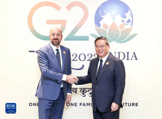當(dāng)?shù)貢r(shí)間9月10日上午,國(guó)務(wù)院總理李強(qiáng)在新德里出席二十國(guó)集團(tuán)領(lǐng)導(dǎo)人峰會(huì)期間會(huì)見(jiàn)歐洲理事會(huì)主席米歇爾。