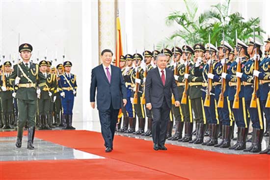習(xí)近平指出,32年前,烏茲別克斯坦在中亞國(guó)家中率先同中國(guó)建交,兩國(guó)人民傳承絲路精神,中烏友好大樹根深葉茂,生機(jī)勃勃。特別是過去7年多來,我們共同引領(lǐng)兩國(guó)各領(lǐng)域合作呈現(xiàn)蒸蒸日上的良好局面。建設(shè)一個(gè)更加富有內(nèi)涵和活力的中烏關(guān)系,是兩國(guó)人民的共同期盼。雙方要以發(fā)展新時(shí)代全天候全面戰(zhàn)略伙伴關(guān)系為契機(jī),以高水平政治互信筑牢中烏命運(yùn)共同體的根基,以高質(zhì)量共建“一帶一路”助力中烏推進(jìn)各自現(xiàn)代化事業(yè)。