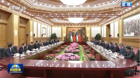 習(xí)近平同烏茲別克斯坦總統(tǒng)米爾濟(jì)約耶夫會(huì)談
