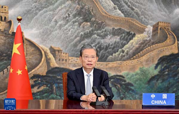趙樂際在“中立之友小組”成員國議會(huì)領(lǐng)導(dǎo)人會(huì)議上發(fā)表視頻致辭